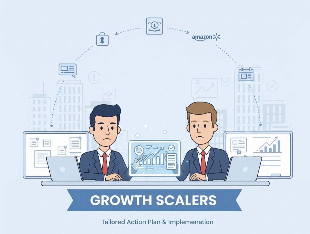 Today, Growth Scalers is a global team of 20+ ecommerce growth specialists spanning the U.S., UK, and the rest of Europe with an average 28% month-on-month growth across clients, a 96% retention rate and we pride ourselves with $0 in hidden fees. The team you see before you does not just manage ads, we engineer momentum. Across Amazon, Walmart, and Shopify, we help brands break through plateaus, reclaim wasted ad spend, and turn scattered data into scalable profit.